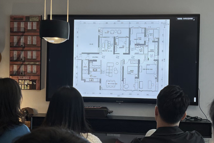 硬裝結(jié)束家具進(jìn)場后,設(shè)計(jì)師與業(yè)主到現(xiàn)場進(jìn)行 軟裝溝通并記錄;