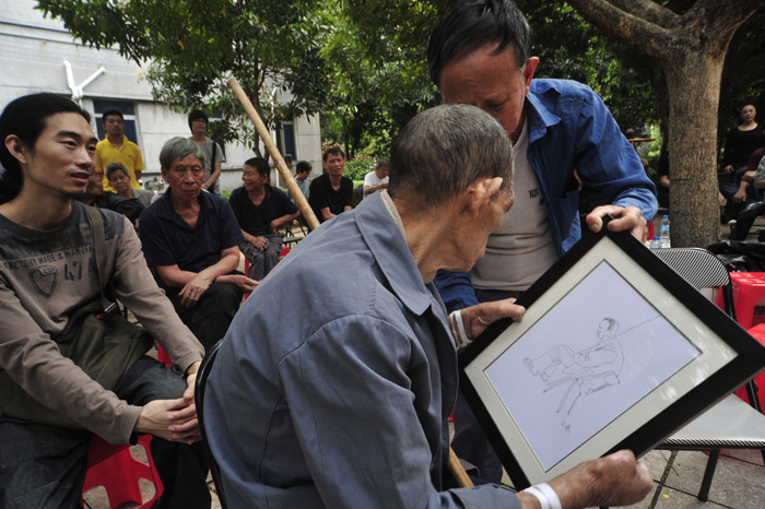 老人看著自己的畫(huà)像激動(dòng)不已。