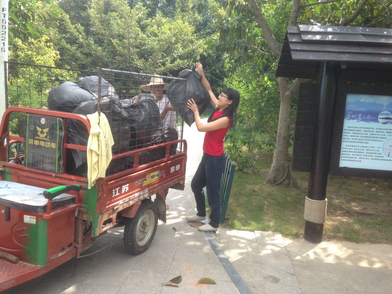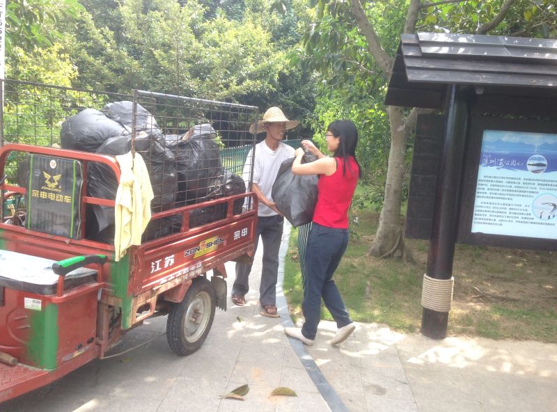 我們提著一大袋垃圾,好在發(fā)現(xiàn)環(huán)衛(wèi)伯伯,主動(dòng)出擊?。?/span>