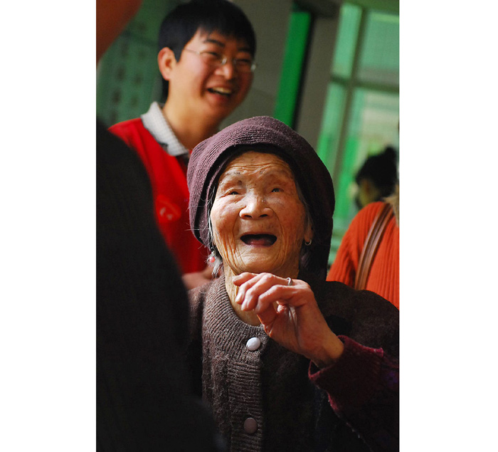 這位婆婆(綠色衣服)九十高齡了,象么?