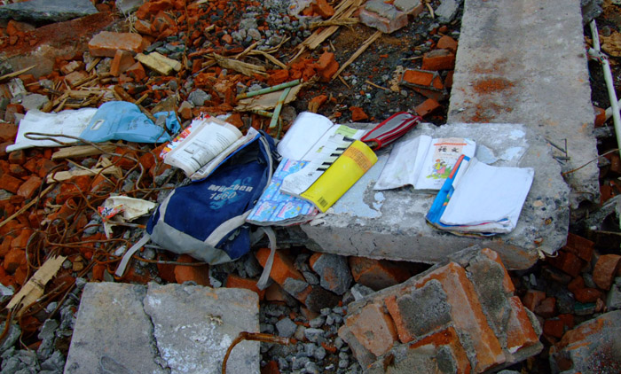 這是漢旺小學(xué),十幾個(gè)孩子還壓在里面,這位其中一位孩子的父親,一直在這里等待。