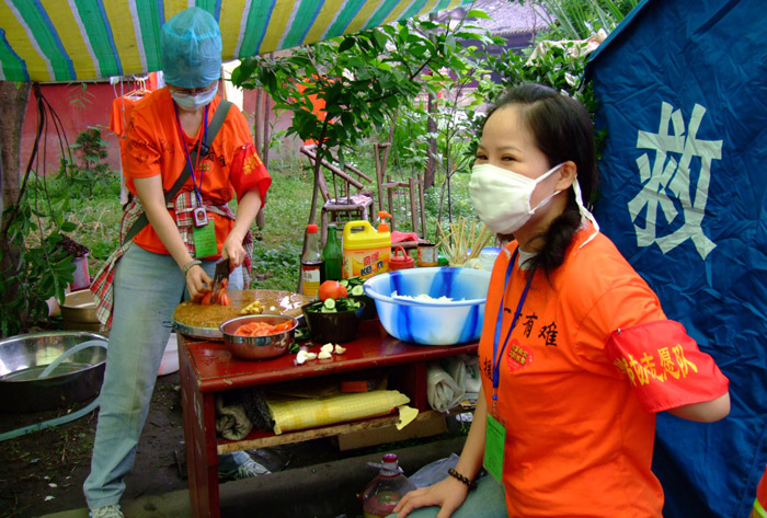 在支離破碎中,點(diǎn)點(diǎn)的桔紅溫暖著很多人的心。感恩這些在汶川做義工的人們,心火的力量是巨大的,無可估量的。