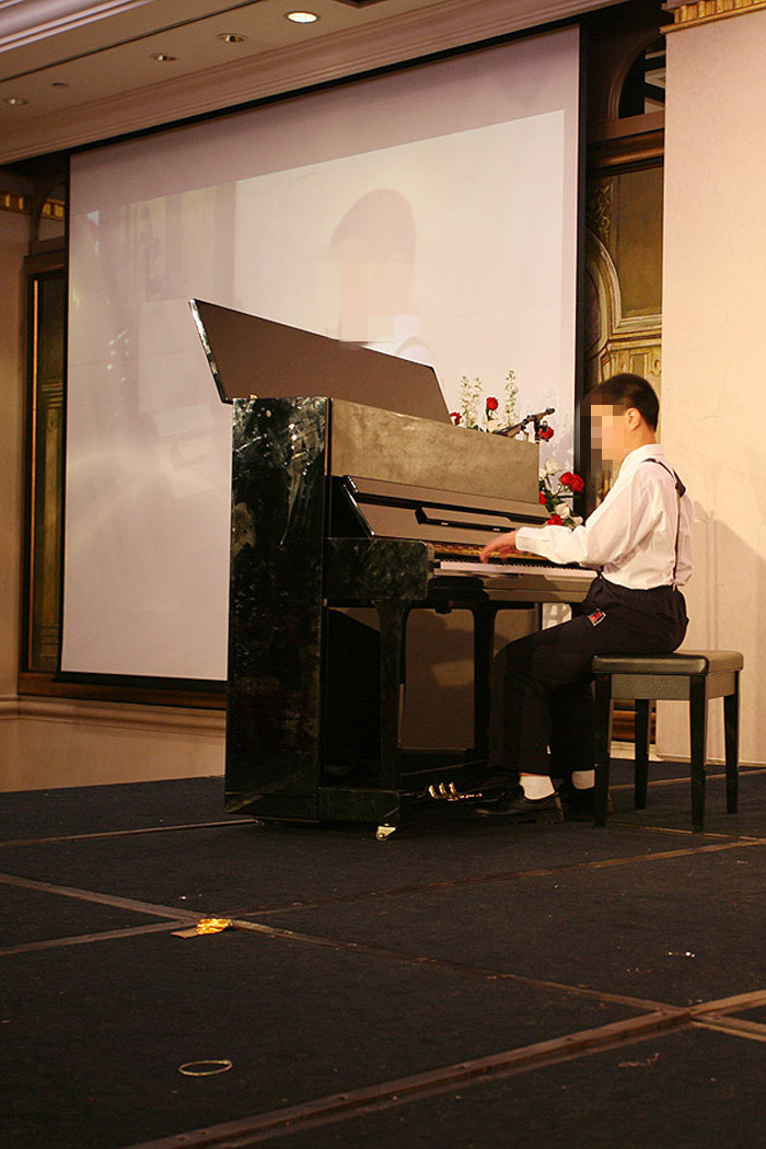 鋼琴演奏的同時,3米為小表演者現(xiàn)場畫漫像