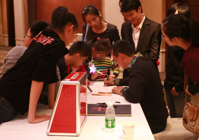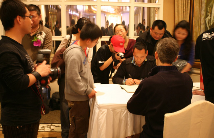 3米的漫畫義賣攤兒引來了很多圍觀者,丹麥風情的經(jīng)理也來了