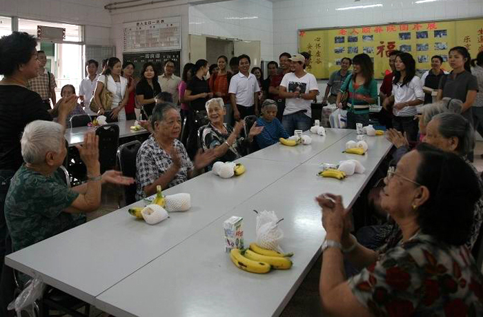 爺爺奶奶們知道我們要來(lái),早早在樓上坐齊等待著我們。分發(fā)水果后,爺爺奶奶們用熱烈的掌場(chǎng)歡迎我們的到來(lái),讓我們真切的感受到濃濃情意!