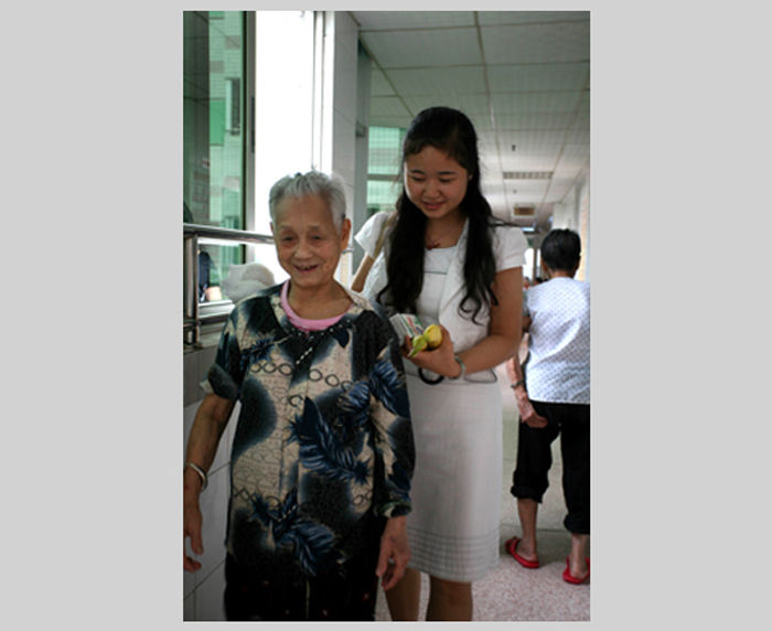 手心碰手心,老人需要的是愛(ài)心。這位奶奶雖已過(guò)九十,卻依然能感受到她身體的結(jié)實(shí)??磥?lái),老人還是稍微胖一點(diǎn)好。