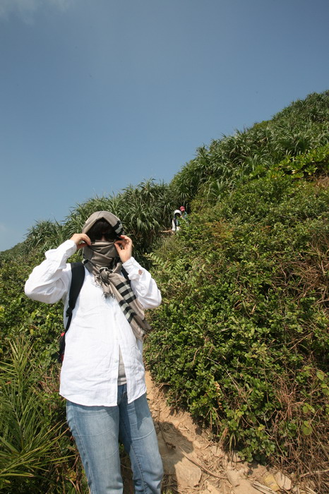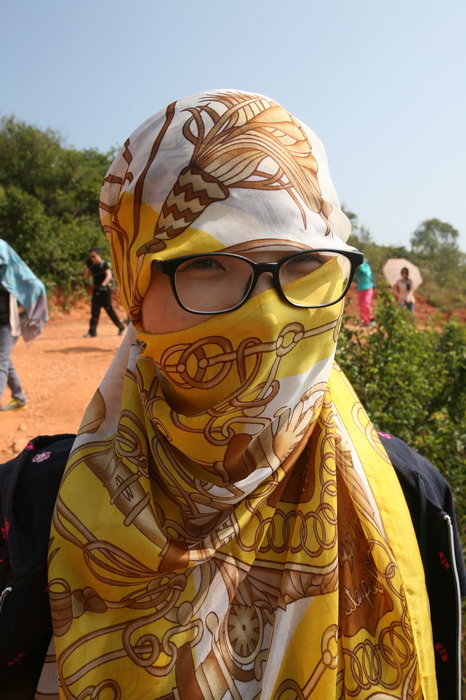 這一天如果碰巧你也在東西沖徒步,不要誤以為遇到土匪了哦,我們愛美的女同事們,個(gè)個(gè)都包得像個(gè)迪拜“土豪”一樣的,嘻嘻,最具代表性的登場(chǎng)……(下圖)