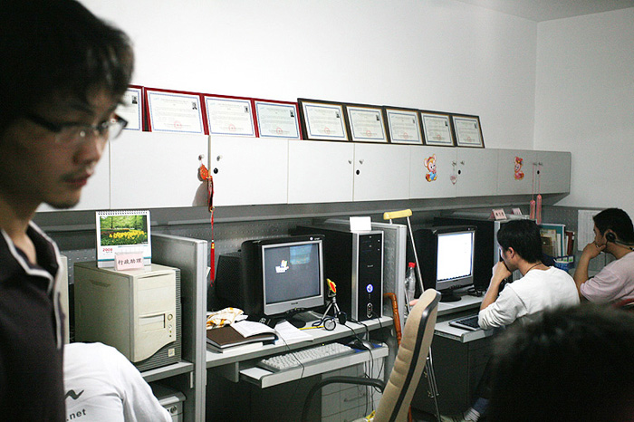 好客的劉勇帶我們到了他們公司的一個辦公室,這里很大很干凈,大家都在聚精會神的工作中~