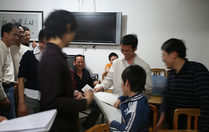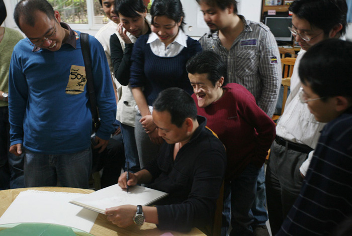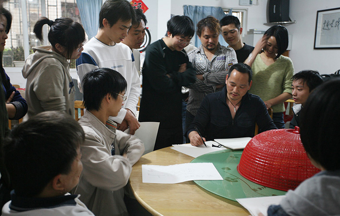 第一位穿白襯衣的就是動漫車間的首席設(shè)計師---曾志明(兒麻左手殘)