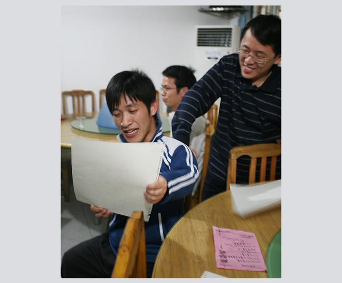 這是在紅羽大哥 “越是殘疾 越要美麗”的帖中所寫到的,正如他所說,當(dāng)我們“3米設(shè)計團隊”全體成員來到這群殘疾人當(dāng)中,和他們一起說笑一起觸碰生活的時候,我們肅然起敬,因為我們看到的他們會用比我們這些健全人更多的愛去體驗生活,用更細膩的心思去感受生活,在他們的世界里有比我們更多的美麗… …