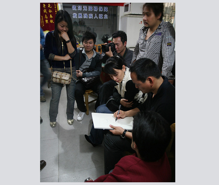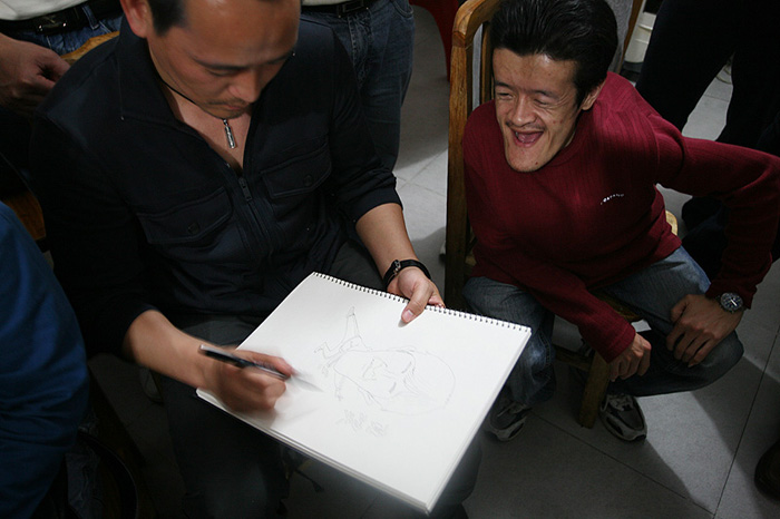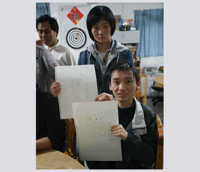 峰哥也是功底深厚和3米一起當(dāng)場為這位深圳現(xiàn)代“黃飛鴻 ”(殘友公司的軟件技術(shù)員他與武術(shù)宗師黃飛鴻重名重姓)畫了漫像.