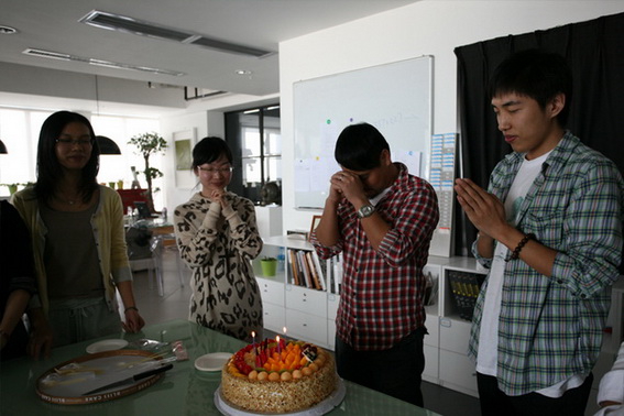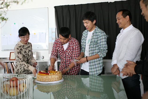 今天真是收獲的日子,因?yàn)榻裉焓墙o我們十一月份生日的伙伴阿峰、小燕、居易過生日,上午和大家一起交流了設(shè)計(jì)、心態(tài)和學(xué)習(xí)的話題,中午就和這三位伙伴分享快樂。有時(shí)候覺得我們在一起不像是工作的同事,更像是家人,多了更多的溫暖和情意,大家有快樂一起分享,有困惑一起面對,攜手并肩的往前行走。