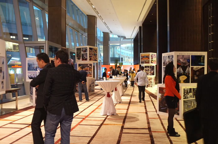 主辦方在宴會廳走廊設的設計入圍作品展板(如上圖)