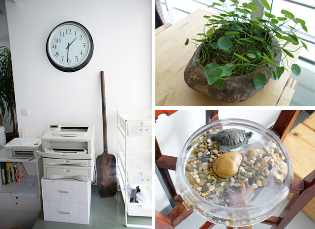 一塵不染的辦公室。小龜和金錢草安靜地陪著我們每一天!