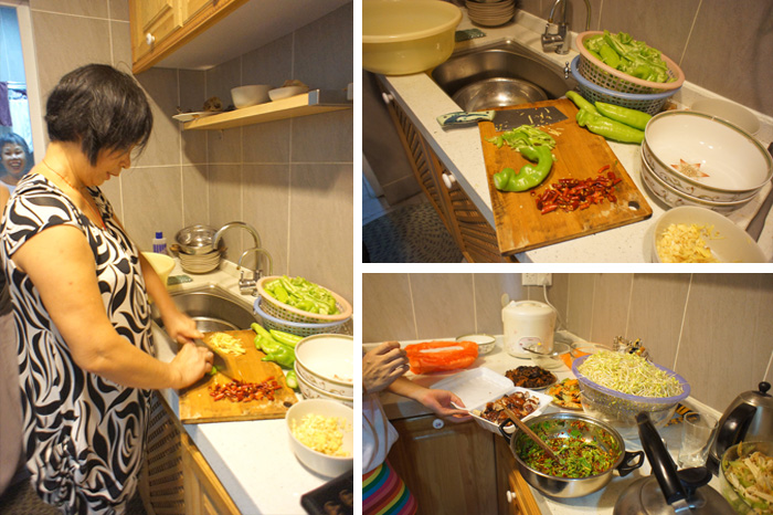 外面開始準(zhǔn)備的時候,廚房里面也沒閑著???,這是我們的大廚——同事張潔的媽媽!(下圖)