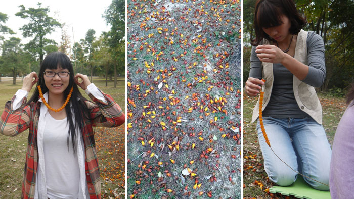 素淡的樣子,幽幽的香氣,落在舊書(shū)的扉頁(yè),像是誰(shuí)的故事,串起來(lái)掛在頸上,好鮮活的裝飾物哦,笑的這么燦爛,給個(gè)鏡頭吧?。ㄏ聢D)