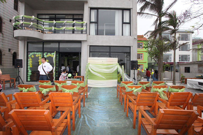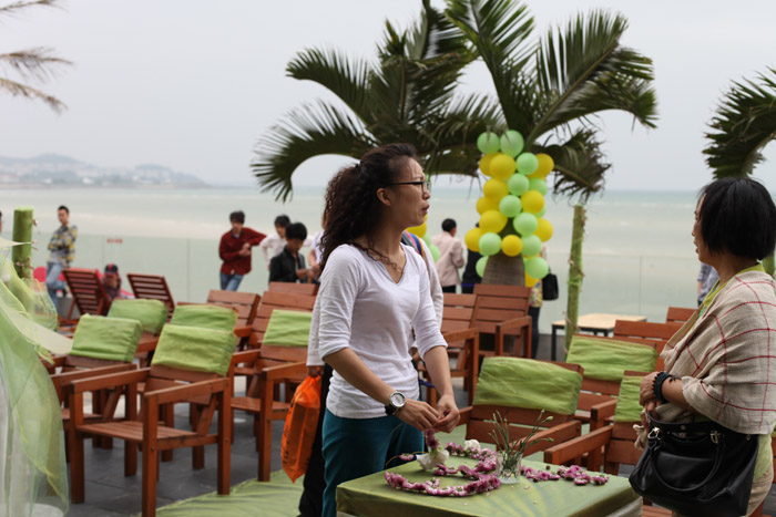 1個(gè)鐘的車程車隊(duì)抵達(dá)深圳大鵬灣,大家可以分工忙碌起來,三米伙伴們負(fù)責(zé)加入現(xiàn)場布置的團(tuán)隊(duì)里,觀禮的賓客們則負(fù)責(zé)先到房間休息欣賞迷人的海景(貼心的新郎新娘為了讓大家玩得盡興,都為每個(gè)來參加婚禮的賓客準(zhǔn)備了海景房)。(下圖)