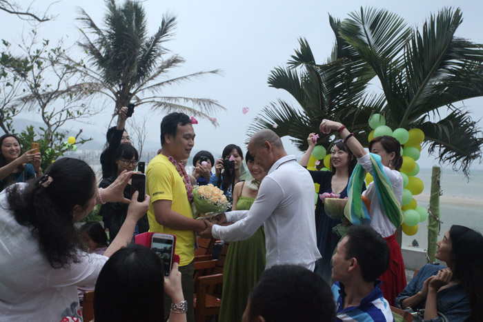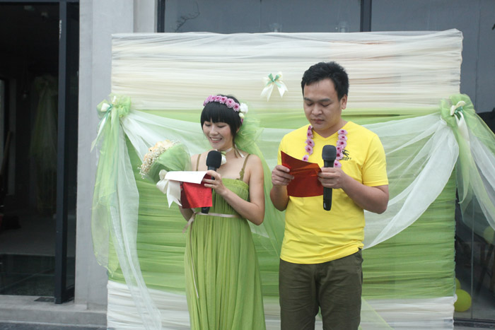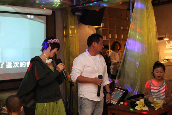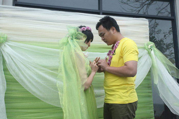 新郎新娘正在大聲的讀出自己的誓詞,他們要的不只是一句簡單的我愿意,而是大聲的宣讀出這一輩子的承諾并蓋上手??!