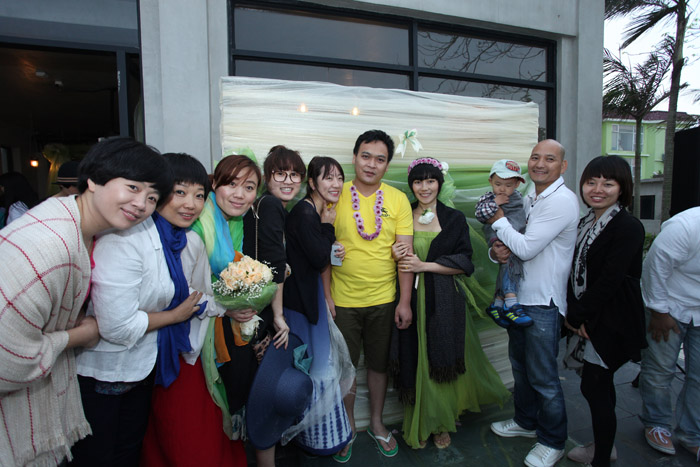 下面是合影時(shí)間,擺出你最美的笑容,祝福這對(duì)美麗的新人!差點(diǎn)忘了強(qiáng)調(diào),今天新娘真的好清新好美,這條裙子也是新娘的妹妹親手做的哦……(下圖)