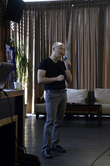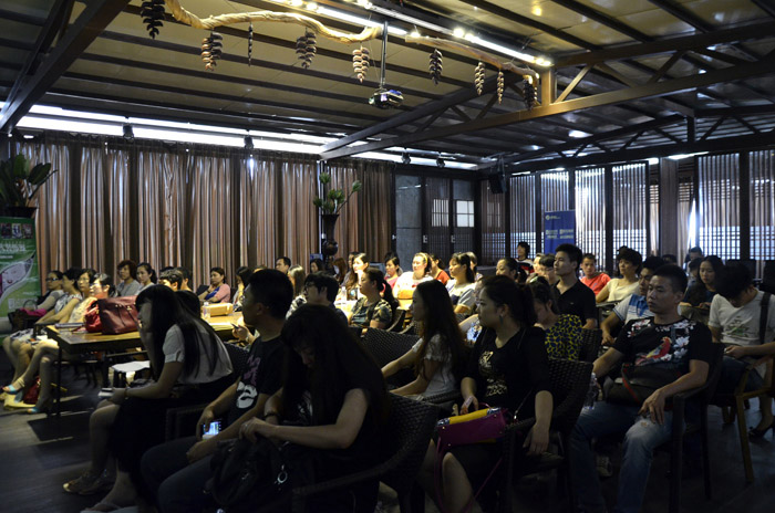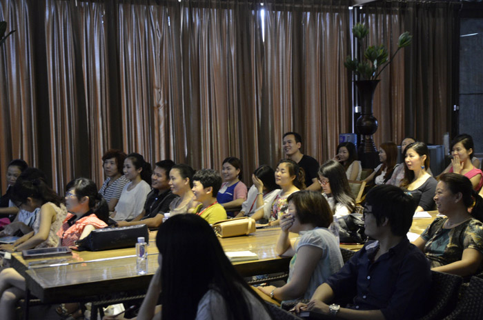 人員到齊就坐,準(zhǔn)備開始上課咯……三米老師在主持人的邀請下正式上臺,正在給大家介紹自己……(下圖)