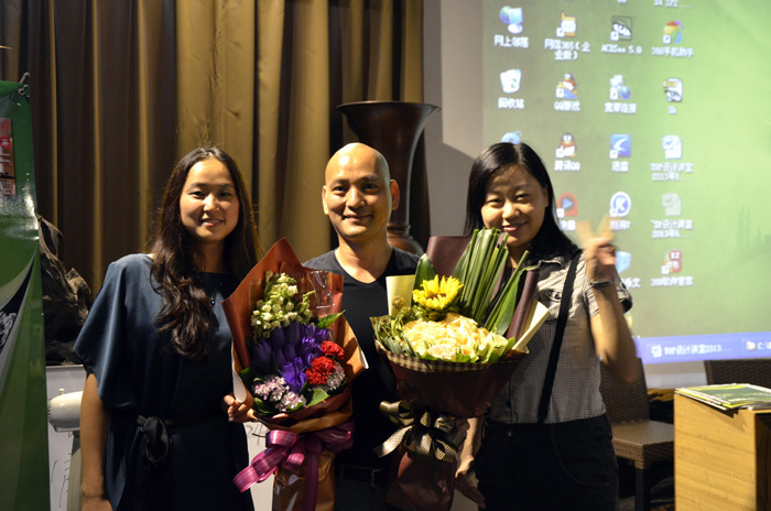 就在上課前,兩位美女為三米老師送上了鮮花,感謝三米老師精彩的講課,感謝三米老師的辛勞付出……(下圖)
