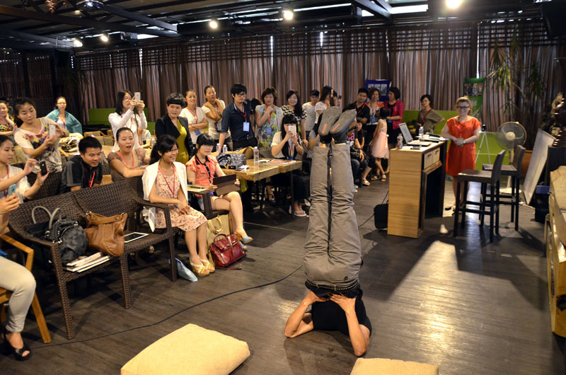 先來調(diào)節(jié)一下現(xiàn)場的上課氛圍,來個招牌倒立動作,給大家講講辦公室的瑜伽、養(yǎng)身操,