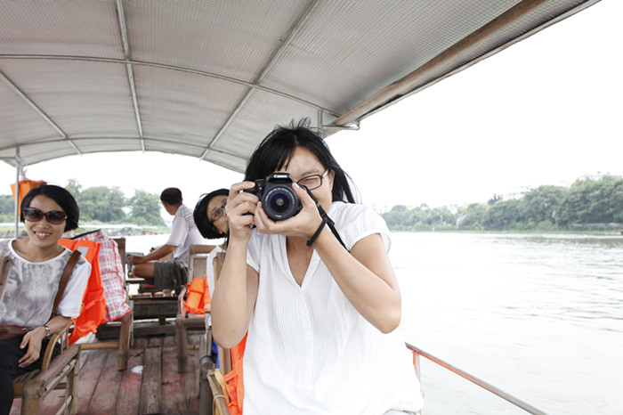 8日,驅(qū)車去桂林,游漓江,觀象鼻山。今天小雨,煙雨漓江,細雨如紗的美景。引得設(shè)計師鄒雪狂拍。(下圖)