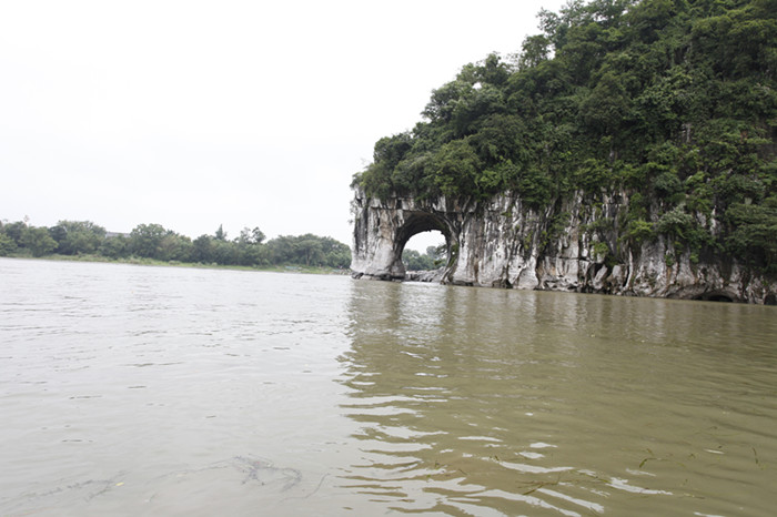 象鼻山,真是驚嘆大自然的鬼斧神工,那長長的象鼻子伸入河中吸水,只是它身上長滿了郁郁蔥蔥的小樹。(下圖)