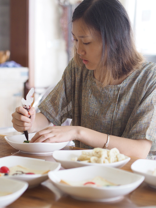 “筆”——根據(jù)個人的口味,有沙拉醬、巧克力醬;