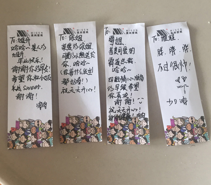 我們老幺肉肉童鞋正在認真的給每一位小伙伴們寫留言,每一句都是暖心的話語。
