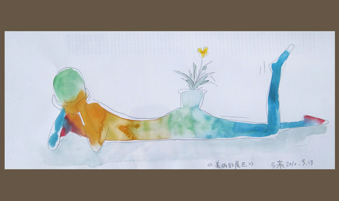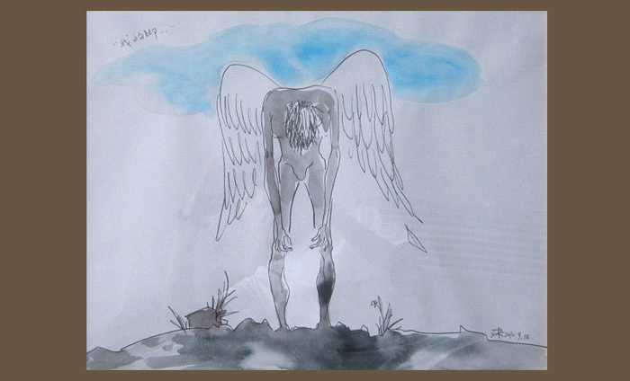 畫中人的腳與大地連接一體,即使有翅膀也無法飛翔,因而傷心。。。生活中,很多人也如此。其實大可不必。古語曰“功到自然成”。當“翅膀”的力量大過“地吸力”時,自然可輕松飛起。(下圖)