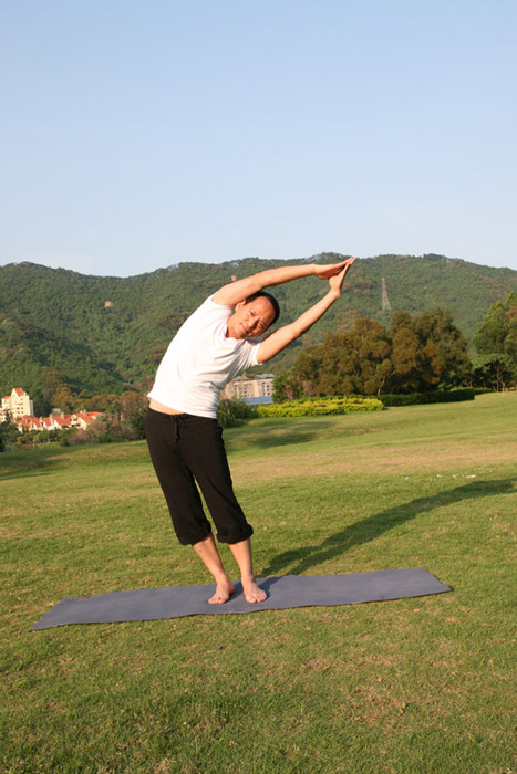 作用:有益于身體每塊肌肉、關(guān)節(jié)、腺體、內(nèi)臟。這是一個加強(qiáng)髖關(guān)節(jié)和側(cè)腰部伸展和力量的最重要的姿勢??煽s減腰圍,強(qiáng)壯三頭肌、斜方肌、胸大肌。