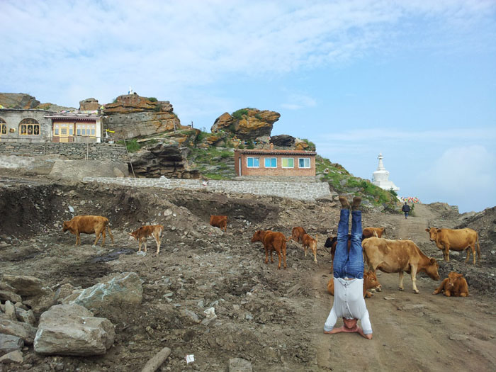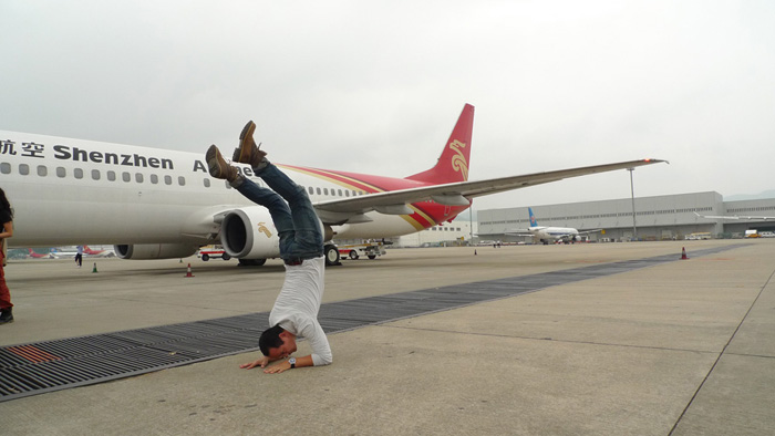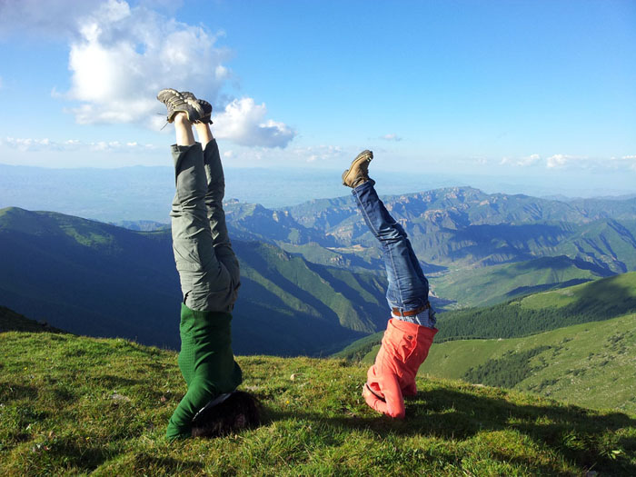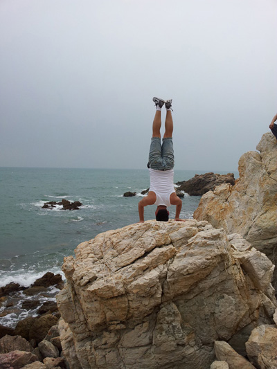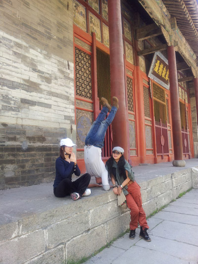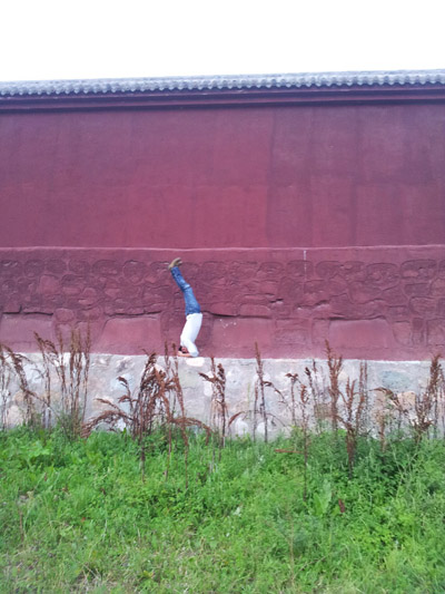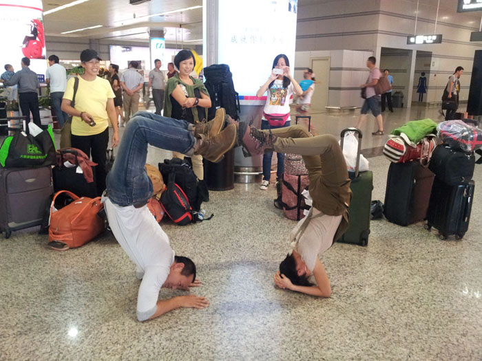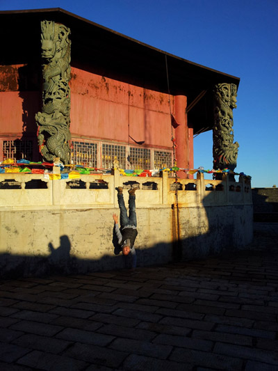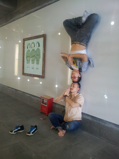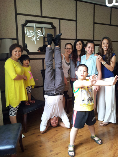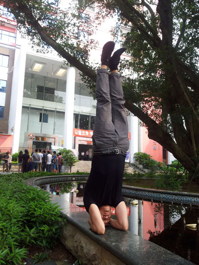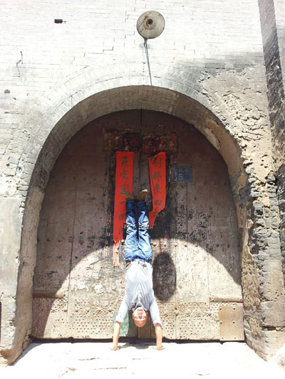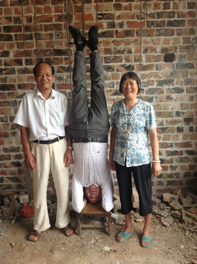 老家的房子因修路被拆遷,只好在祖屋旁另建一棟三層小樓。為了這事,年邁的父母在老家忙乎了幾個(gè)月。上個(gè)月回去時(shí)一、二層已建好。以倒立和親愛(ài)的父母合個(gè)影,逗得兩老笑哈哈。