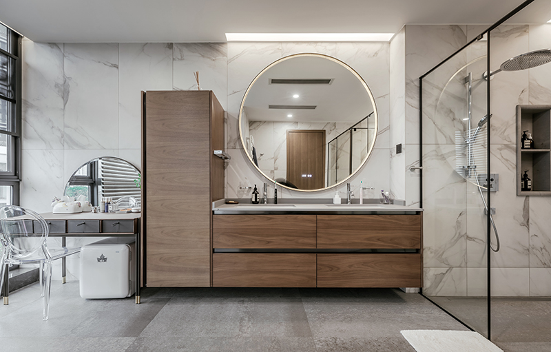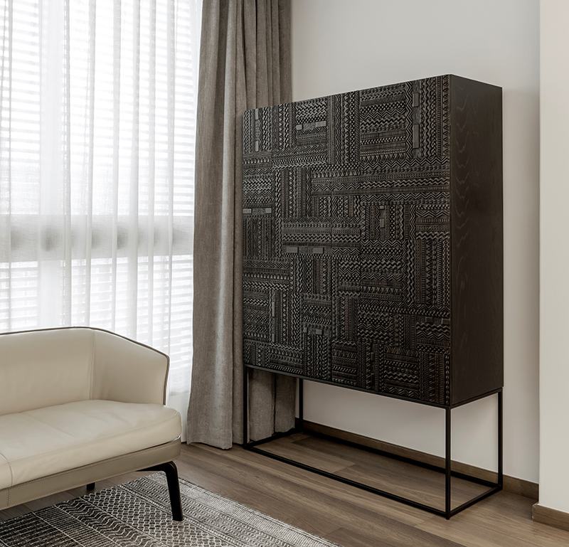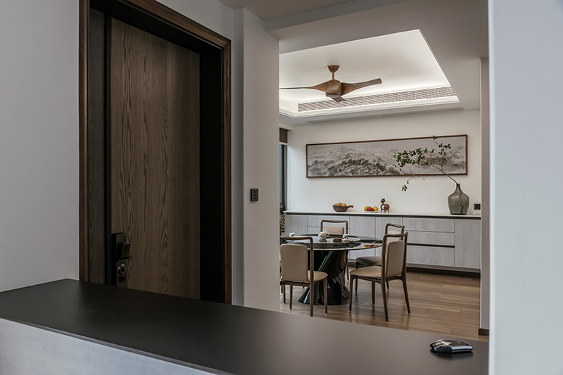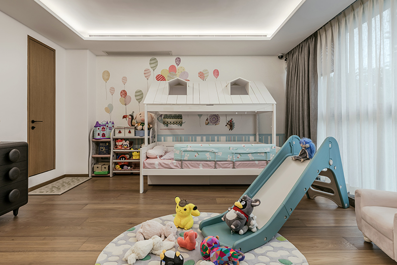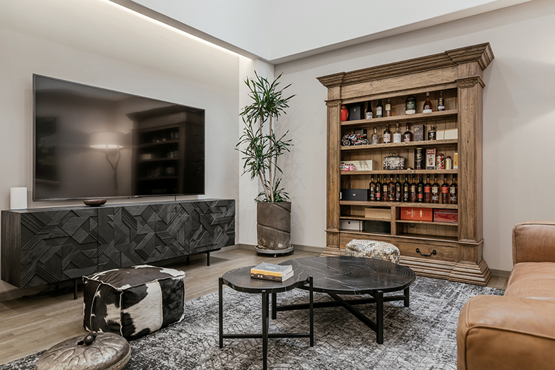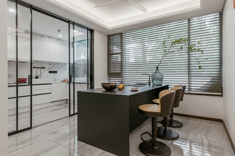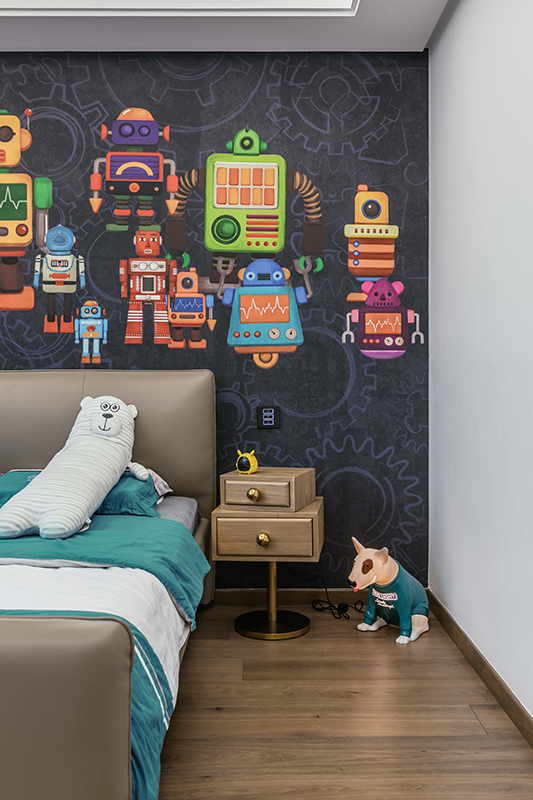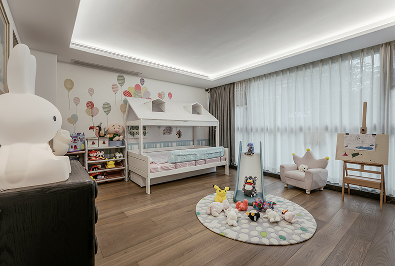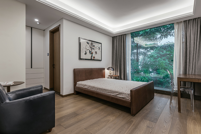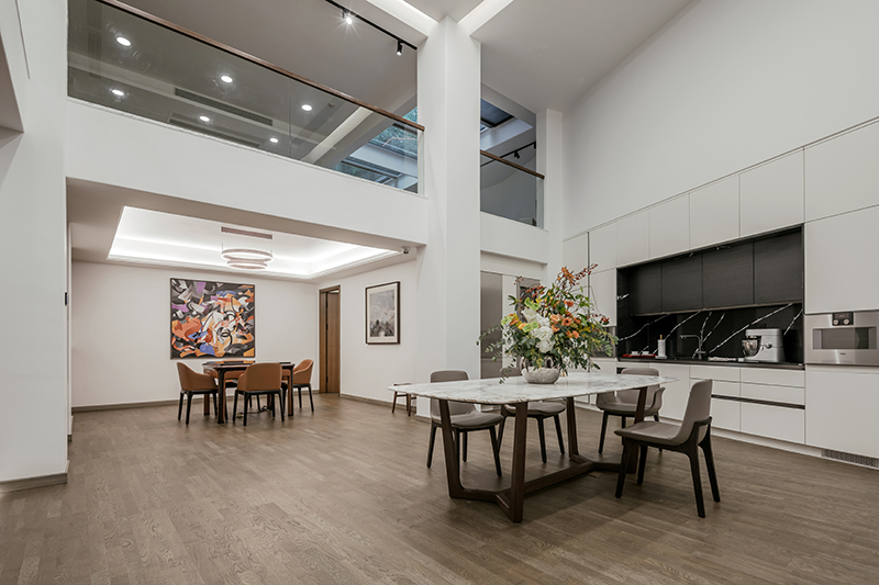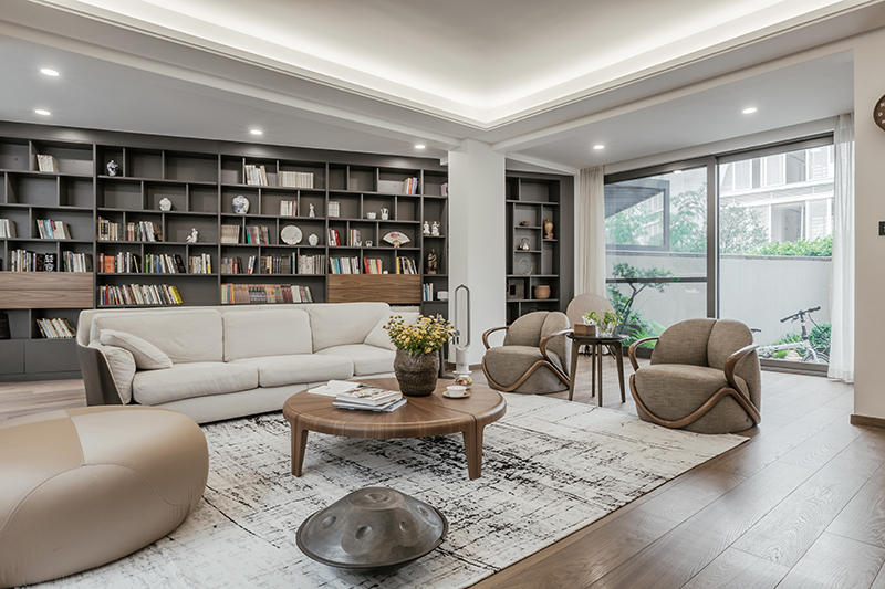 中國的別墅大都從地庫回家,解決地庫采光及通風是一大問題。這套房,我們在一樓前、后花園都開了天窗,通過遙控定期開窗通風。男主人喜歡梵高,為此我們設計了一處星空區(qū),掛上梵高紙質的《星空》,每晚仰望星空,喝著小酒,快意人生。