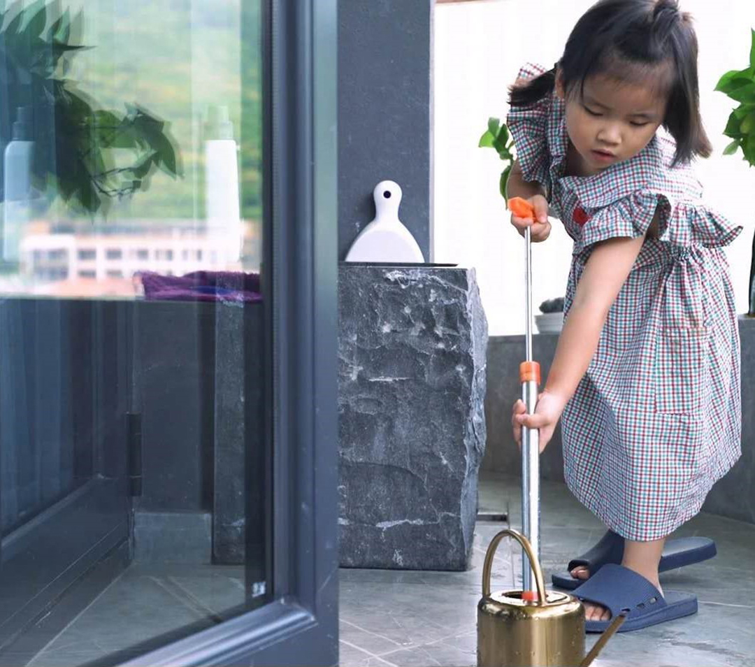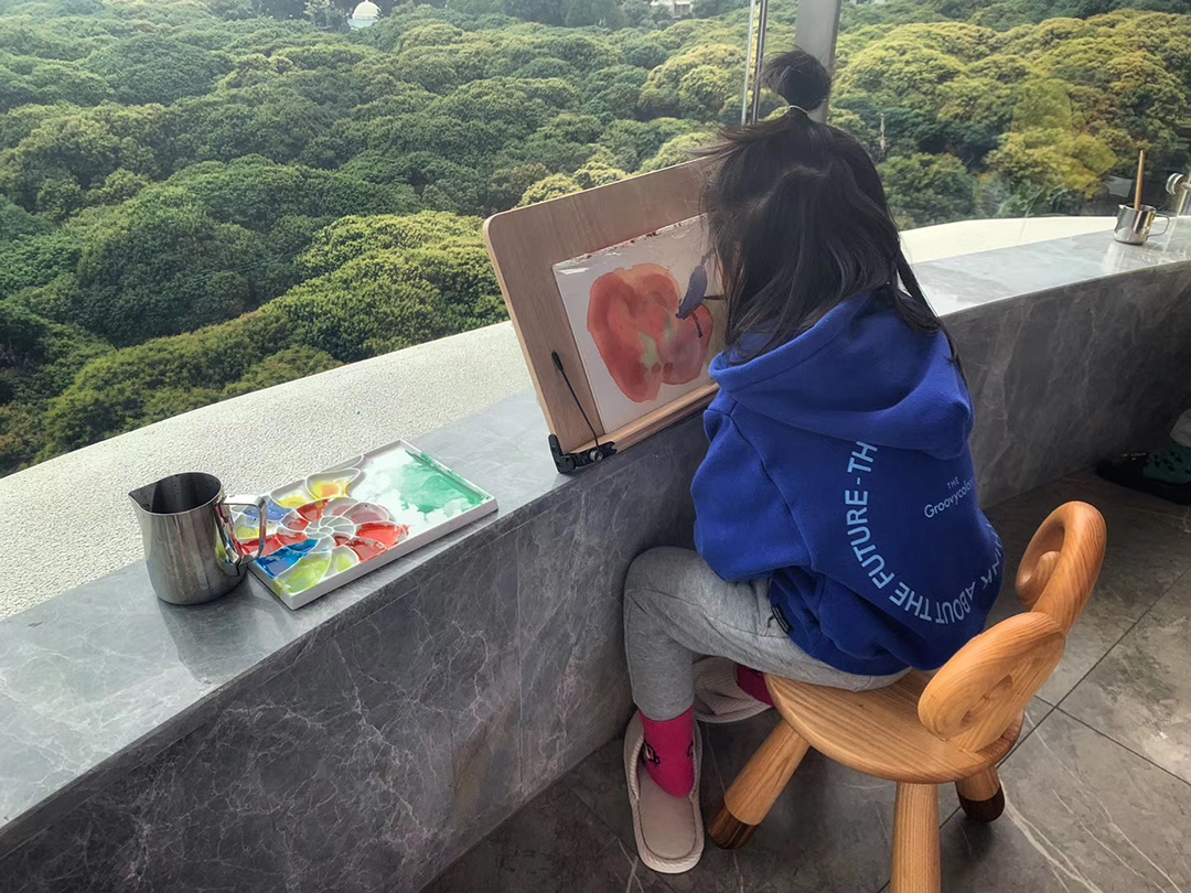 美物很多,而我本又是十分糾結(jié)的人,老師、涂涂、泯穗結(jié)合著專業(yè)經(jīng)驗(yàn)、生活實(shí)用、適合等方方面面,處處給著我至關(guān)重要的意見。比如地板,如果當(dāng)初我選擇了漂亮的瓷磚,現(xiàn)在就不可能有孩子們席地而坐,甚至滿地摸爬滾打,大人們依然輕松自在,閑談自若的狀態(tài),你會因?yàn)楹ε滤麄冎鴽龆叽?、監(jiān)督、叮囑嘮叨;再比如衣服晾曬的位置,如果沒有老師的獨(dú)特見解和安排,就算我知道不能晾在要欣賞美景的主陽臺!撐死了也只會感慨屋子太小,沒地方安排晾曬,只能全靠烘干吧!而現(xiàn)實(shí)是,為了美景全部烘干一件不晾是根本不可能的!多虧了老師把這安排在了隱蔽處。